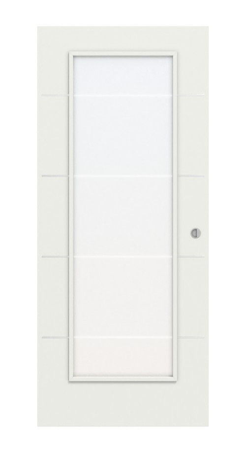 Dzięki jasnej powierzchni powstaje nowoczesny design drzwi. Duże przeszklenie w środku drzwi zapewnia dobrze oświetlone pomieszczenia. Po całej powierzchni drzwi równomiernie rozmieszczone są poziome cztery paski.