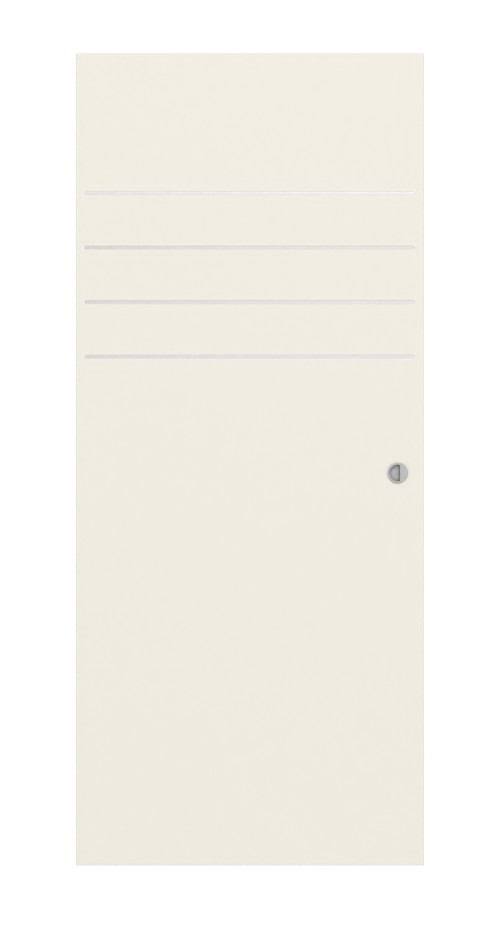Robustne drzwi przesuwne w RAL 9010 z płytą wiórową, uchwytem i rowkiem podłogowym:
