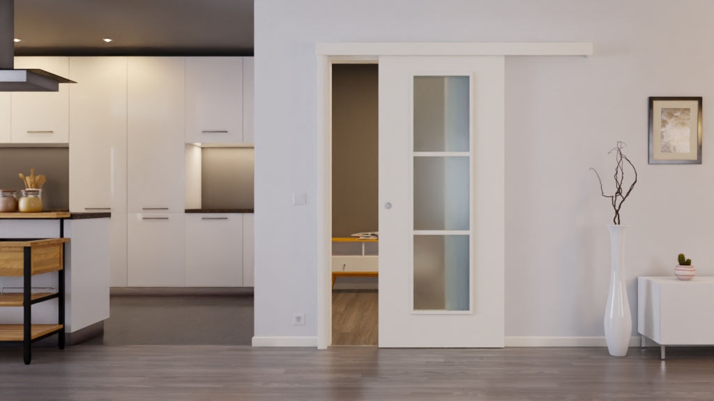 CLASSEN drzwi przesuwne białe RAL 9010 CPL 4.5 z przeszkleniem