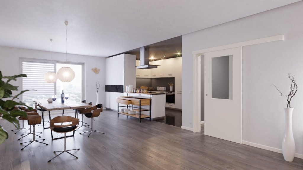 Stabilne drzwi przesuwne w RAL 9010 z uchwytem muszlowym i rowkiem dolnym: