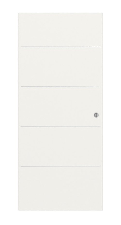 Drzwi wyróżniają się dzięki swojej promiennej, białej powłoce adaptacyjnym designem. Dla urozmaicenia służą cztery poziome listwy, równomiernie rozmieszczone na skrzydle drzwiowym.
