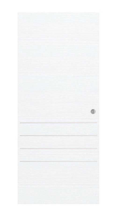 Strukturyzowana powierzchnia nadaje drzwiom nowoczesny i elegancki wygląd. Cztery lizeny w dolnej części drzwi ożywiają cały projekt.