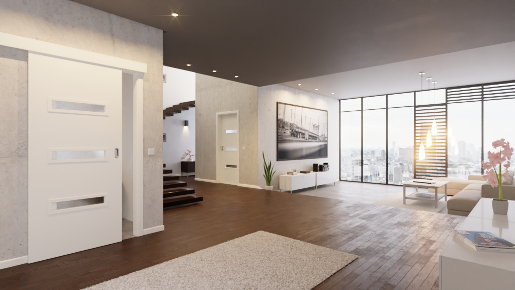 Jakość i funkcjonalność w jednym: Gładkie, białe drzwi przesuwne w białym lakierze RAL 9010 zachwycają ponadczasowością i premium lakierowaną fakturą!