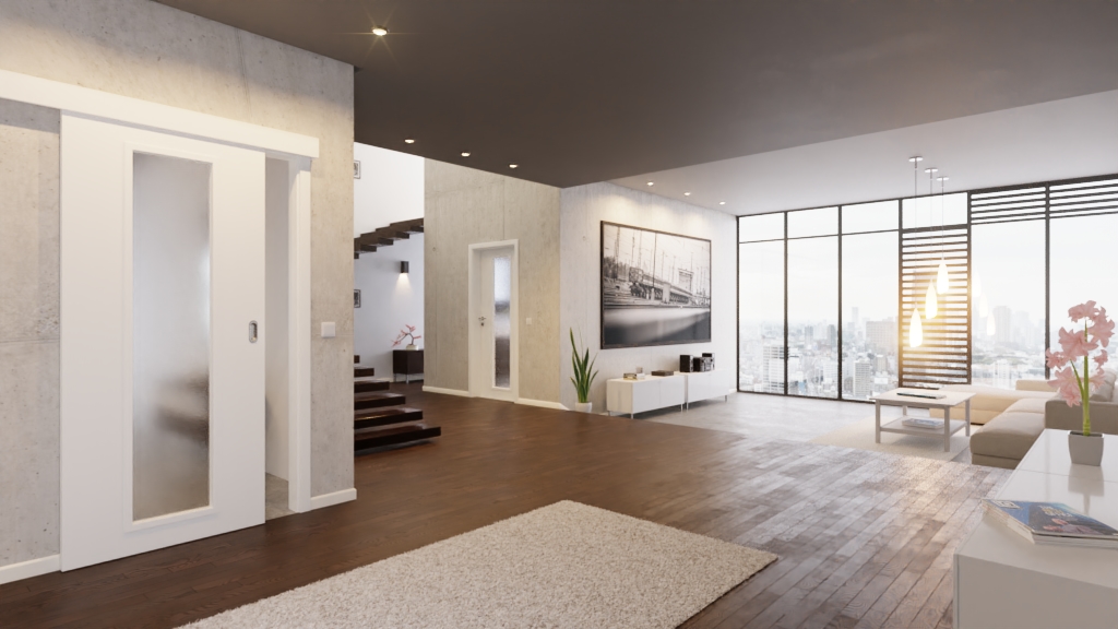 szerokie otwarcie świetlne w środku drzwi bez ościeżnicy daje możliwość uzyskania przezroczystego klimatu mieszkalnego. Otoczone wystającymi listwami szklanymi, mogą być wykonane na równi z powierzchnią. Różne, opcjonalne rodzaje szkła nie pozostawiają żadnych życzeń niespełnionych. wielowarstwowa struktura lakieru w białym lakierze RAL 9016 obiecuje jakość, którą można zobaczyć i poczuć.
