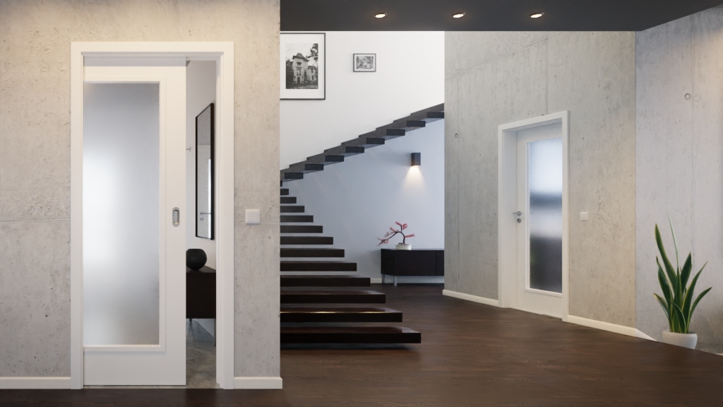 Nowe możliwości aranżacyjne: Ponadczasowy design w białym lakierze premium oferuje drzwi przesuwne w białym lakierze RAL 9016.