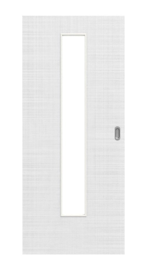 Delikatne linie, które są podkreślone haptycznie przez wytłoczoną strukturę , charakteryzują białą dekorację lnu. Dzięki wąskiemu wycięciu szklanemu pośrodku skrzydła drzwiowego do wnętrza domu wpada dużo światła.