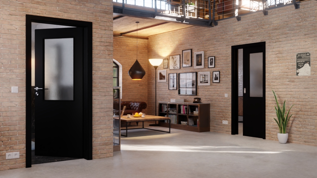 W górnej części skrzydła drzwiowego znajduje się szeroki wycięty fragment szklany . Wpuszcza on do pomieszczenia dużo światła, tworząc w ten sposób pozytywną atmosferę.