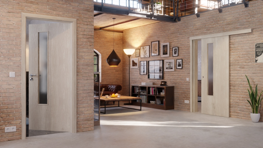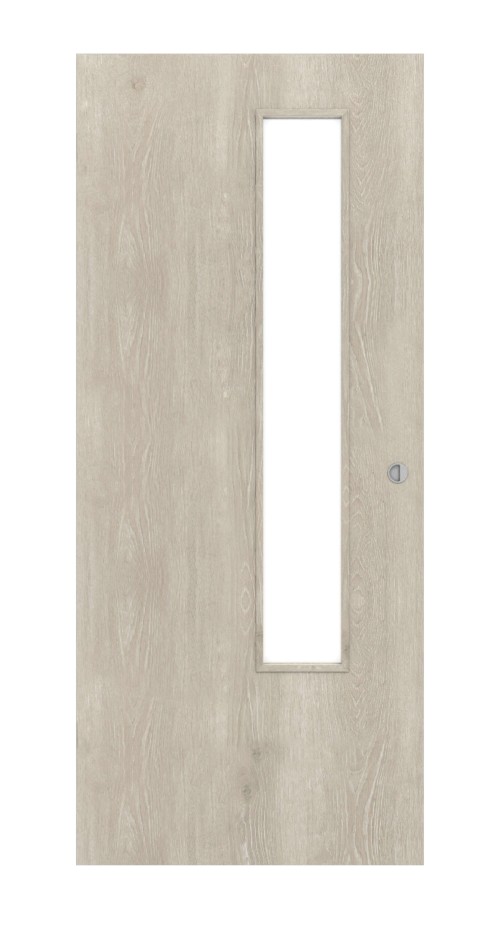 Cienie, sęki i słoje roczne nadają żywy charakter dekorowi dębowego drewna. Szary wygląd drewna nadaje rustykalny wzór, a wąski przeszklony otwór zapewnia przyjazną atmosferę i otwartość w twoim domu. W przypadku przeszklenia ze szkła ESG można wybierać między materiałem przezroczystym a satynowanym.