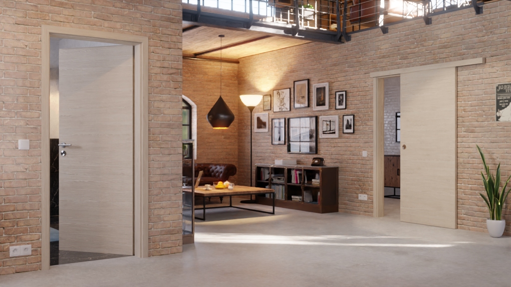 Nowoczesne drzwi przesuwne w Platynowym Dębie Cross EiC 424 PortaLit z solidnymi cechami: