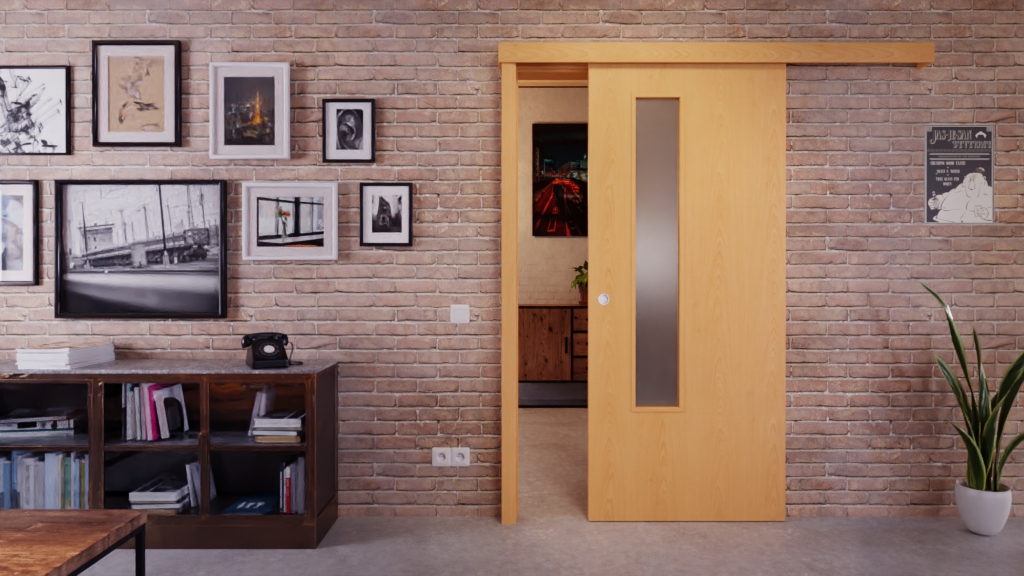 Model drzwi przesuwnych bliski naturze z rowkiem podłogowym i uchwytem: