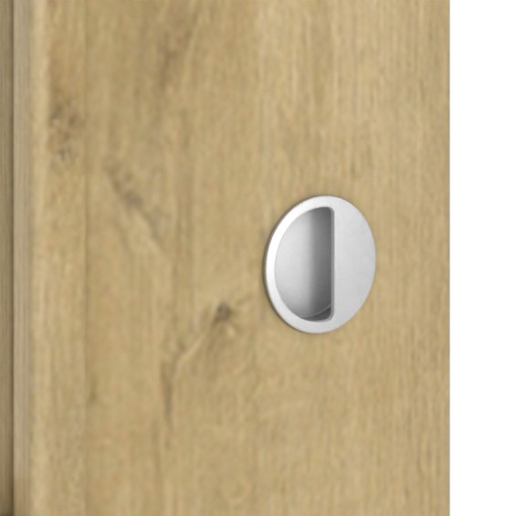 Folia dekoracyjna pokrywa powierzchnię skrzydła. Dzięki temu drzwi nadają się do regularnego użytku w warunkach domowych. Standardowa dostawa obejmuje zarówno skrzydło drzwi przesuwnych, jak i zaokrąglony uchwyt wpuszczany muszlowy oraz frez dolny.