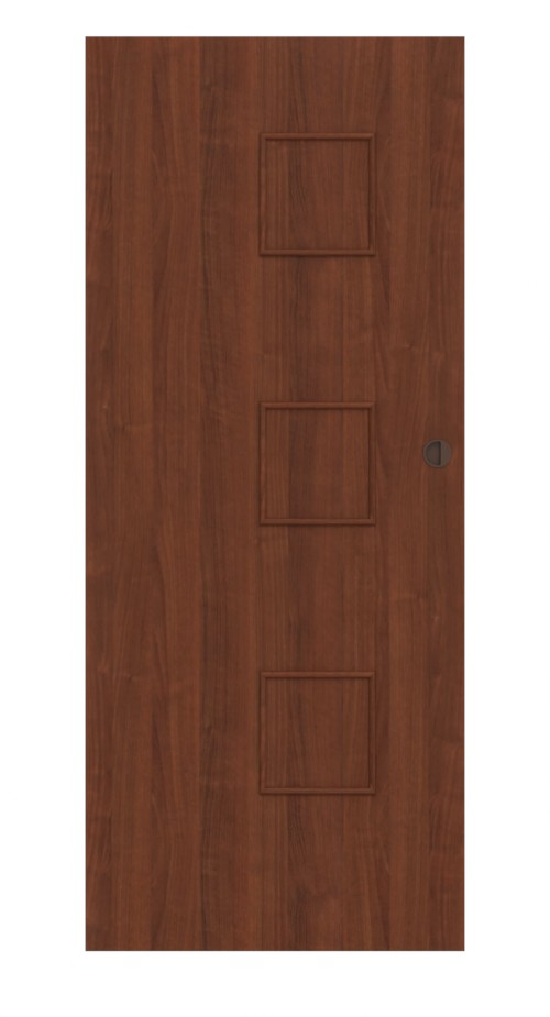 Ciemny odcień nadaje powierzchni z dekoru drewna rustykalny wygląd. Dzięki trzem kwadratowym kasetom skrzydło drzwiowe zyskuje indywidualny charakter.