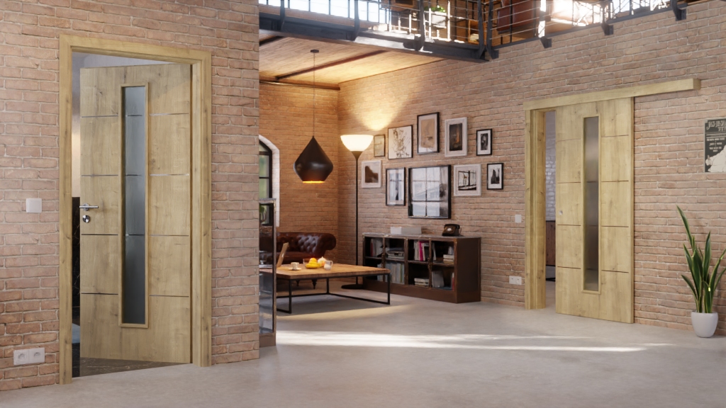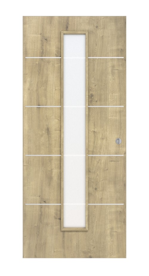 W tych drzwiach umiejętnie łączą się dwa elementy: z jednej strony naturalny dekor dębowy emanuje rustykalnym urokiem. Z drugiej strony wąski otwór świetlny pośrodku wprowadza nieco jasności do Twojego pomieszczenia. Jako łącznik między tymi dwoma składnikami pełnią cztery poziome paski.