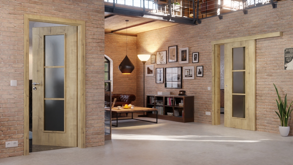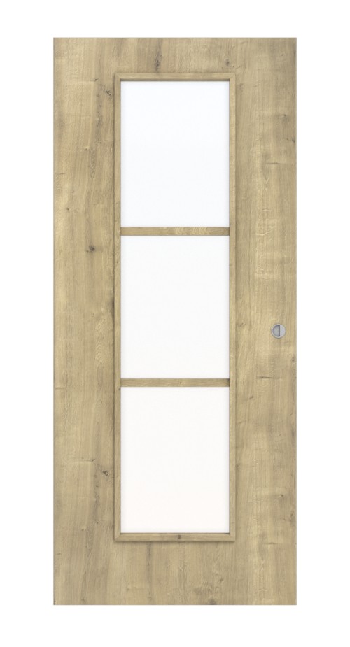 Dekor dębowy zachwyca naturalnością i rustykalnością. Grube słoje i wtrącenia tworzą żywy wygląd. Dodatkowo znajduje się trójczęściowe, centralne okno, które wpuszcza światło. Odpowiednie szkło jest już wliczone w cenę.