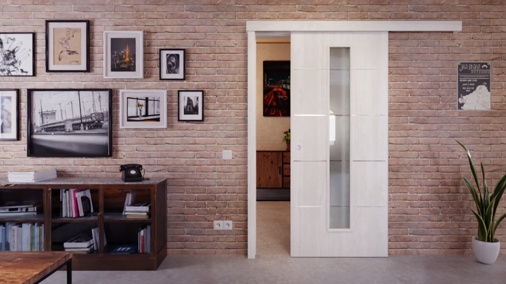 Wygodny model drzwi przesuwnych 4.11 z powierzchnią w kolorze jesionu norweskiego