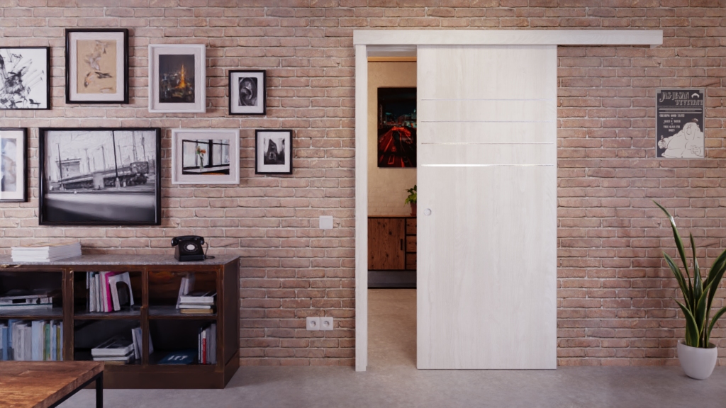 Stabilny model drzwi przesuwnych w norweskim jesionie z rowkiem podłogowym i uchwytem: