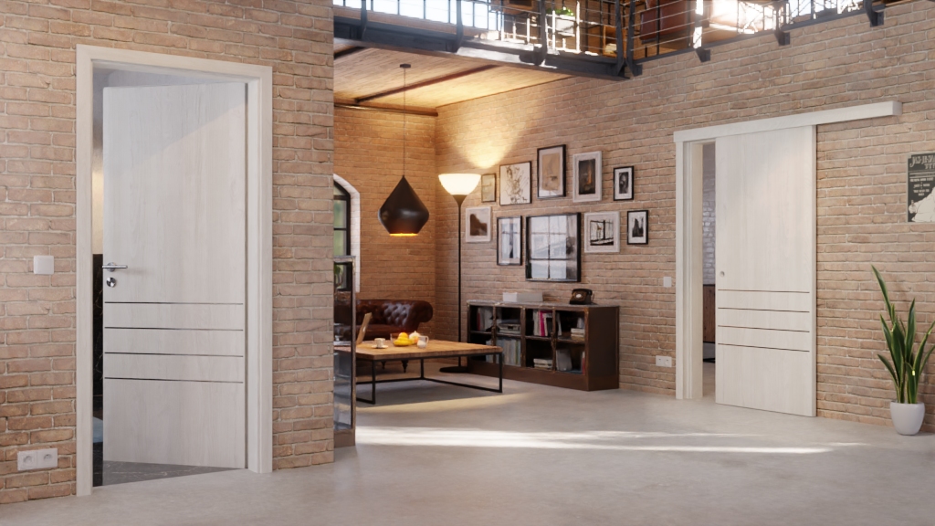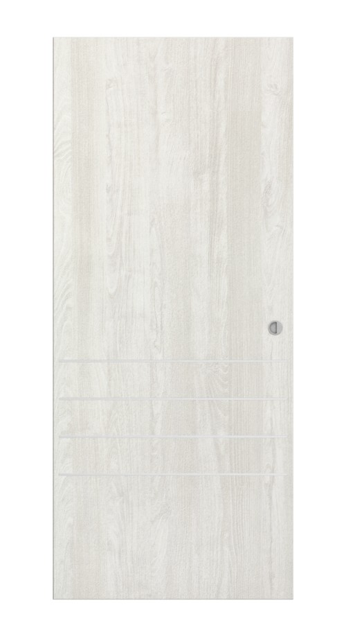Jasny dekor jesionowy zapewnia otwartą atmosferę pomieszczenia mieszkalnego. Dodatkowo w dolnej części skrzydła znajdują się cztery wzdłużne pasy, które przyciągają wzrok.