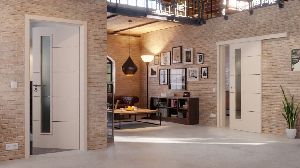 Robustne drzwi przesuwne w kaszmirze z płytą wiórową, uchwytem i rowkiem podłogowym: