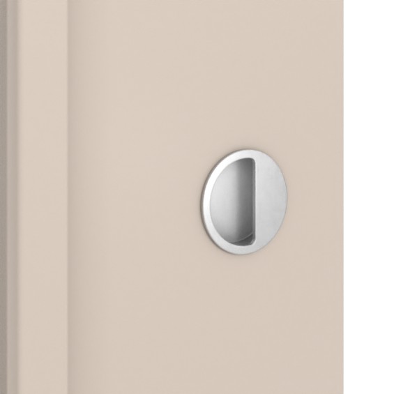 • W zestawie okrągły uchwyt wpuszczany muszlowy i rowek prowadzący