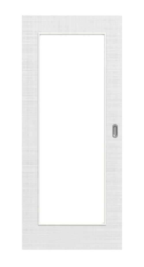 Połączenie wycięcia na szybę i białego dekoru lnianego nadaje skrzydłu drzwiowemu nowoczesny wygląd. Naturalny wzór lnu wygląda autentycznie dzięki wytłoczonej strukturze .
