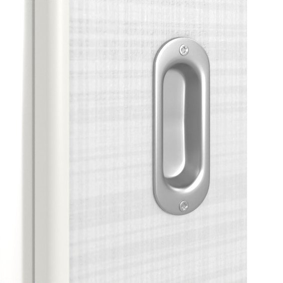 Płyta wiórowa pełna zapewnia stabilność nawet przy intensywnym użytkowaniu. W zestawie znajduje się owalny uchwyt wpuszczany muszlowy.