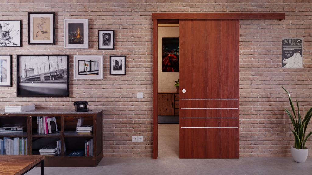 Stabilne drzwi przesuwne w orzech włoski z solidną konstrukcją: