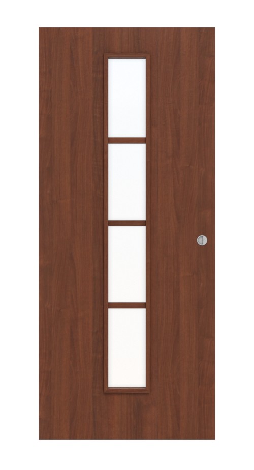 W środkowej części skrzydła drzwiowego znajduje się wąskie, podzielone na cztery części przeszklenie. Do wyboru jest szkło przezroczyste lub satynowane. Połączenie autentycznej powierzchni drewna i przeszklenia tworzy ciepły wygląd.