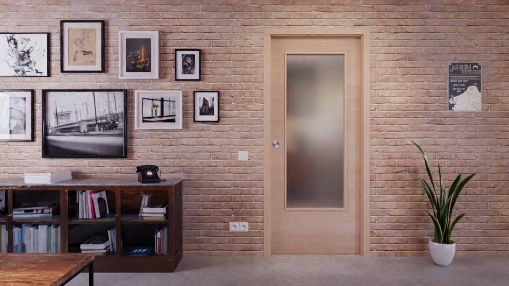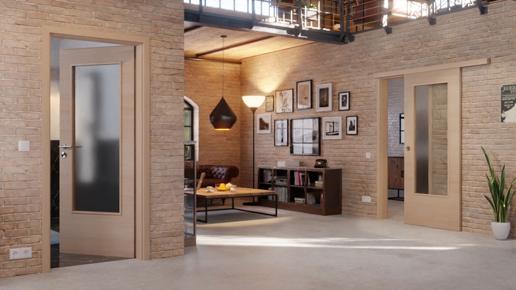 Nowoczesne drzwi przesuwne w jasnym piniowym kolorze Cross PiC 44 PortaLit z solidnymi właściwościami: