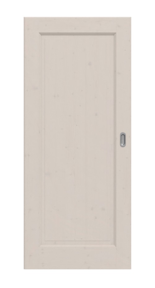 Oszczędzająca miejsce drzwi wiejskie z litego drewna: Drzwi przesuwne TE-1 z białego pigmentowanego świerku zachwycają swoją naturalnością i doskonałą jakością wykonania.