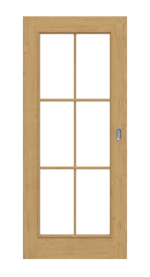 Elegancka rama z przegrodami zdobi duże przeszklenie, które harmonijnie otacza stylowo zdobiona listwa szklana. Charakterystyczne słoje rozciągają się na ciepłym dębie i wprowadzają przytulną atmosferę do pomieszczenia.