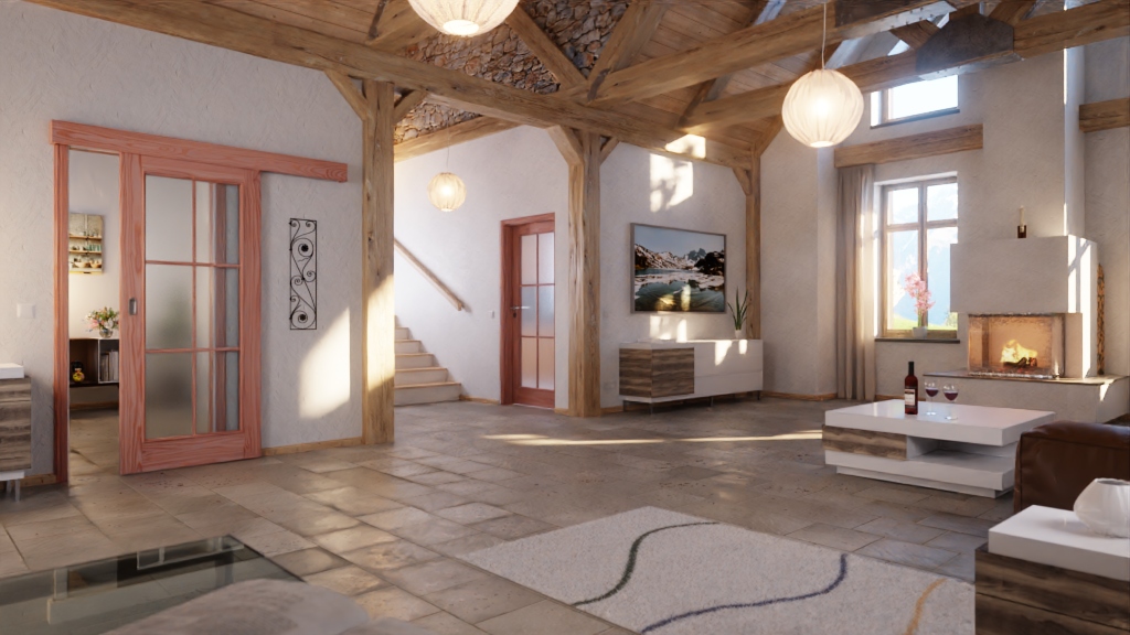 Model ten, z dużym przeszkleniem, wnosi światło do ciemnych pomieszczeń. Szkło ozdobione jest delikatnymi szprosami i otoczone zdobionymi listwami. Przytulną atmosferę zapewnia ciepłe drewno modrzewiowe, które jest przesiąknięte naturalnymi słojami.