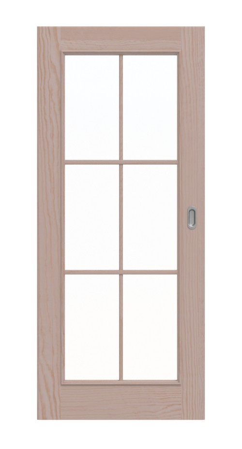 Elegancka rama z przęsłami ozdabia duże przeszklenie, które harmonijnie otaczają stylowo zdobione listwy szklane. Dzięki unikalnemu układowi słojów drewna sosnowego każde drzwi zyskują indywidualny charakter.