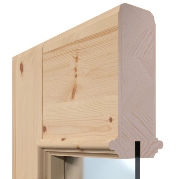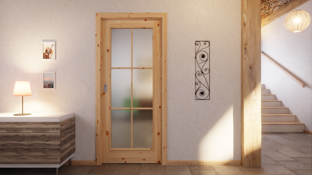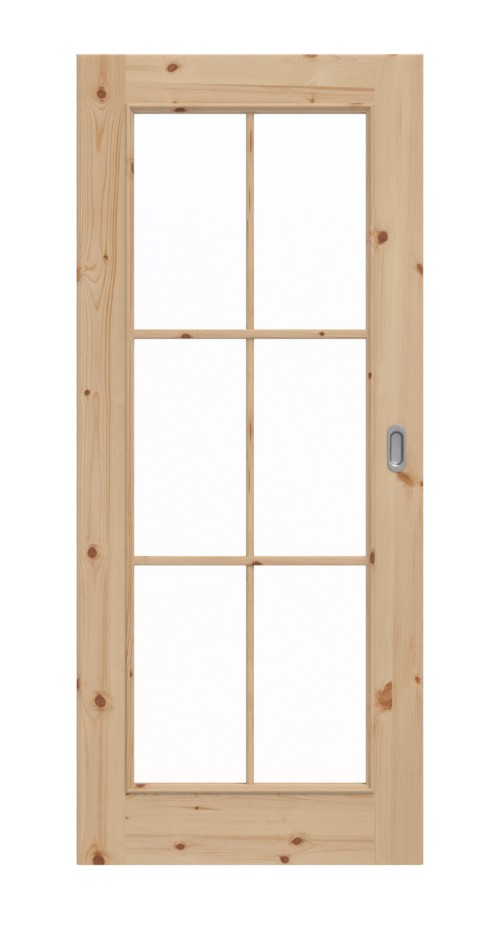 Model z dużym przeszkleniem wnosi światło do ciemności. Szkło zdobią delikatne szprosy i jest otoczone ozdobnymi listwami. W drewno sosnowym rozwijają się wyraźne ramy sęków, nadając mu rustykalny charakter.