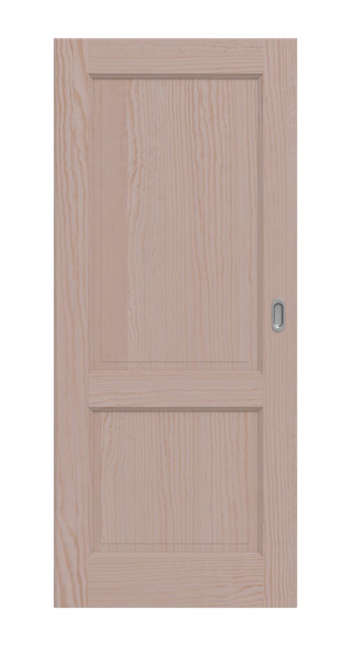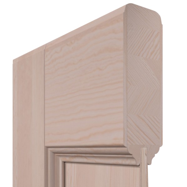 Dwie profilowane wypełnienia, otoczone ozdobnymi fryzami, nadają elegancki wygląd z wyraźnymi konturami. Naturalnie, bezsękowe usłojenie sosny tworzy na każdym skrzydle drzwi unikalny wzór.