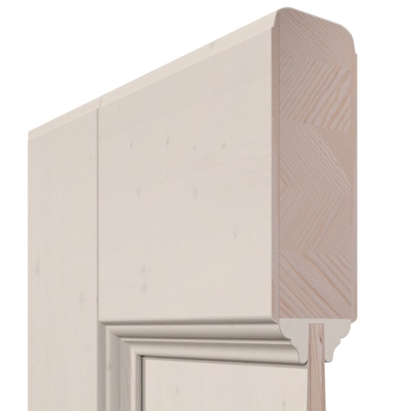 Osadzone w szerokich, ozdobnych fryzach, obie profilowane wypełnienia tworzą ponadczasowy wygląd eleganckiego piękna. Drewno świerkowe jest wzbogacone o białą pigmentację, która delikatnie pozwala prześwitywać słojom z udziałem sęków.