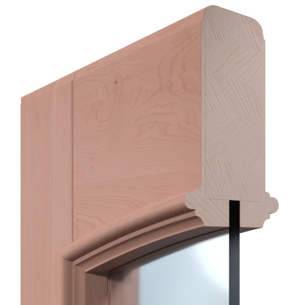 Dzięki dużemu przeszkleniu z eleganckim łukiem segmentowym i ramą z przegrodami do wnętrza wpada przyjemne światło. Ozdobne listwy szklane i szerokie fryzy dopełniają klasyczny design. Naturalny rysunek buku przejawia się w każdym skrzydle drzwi w indywidualny sposób.