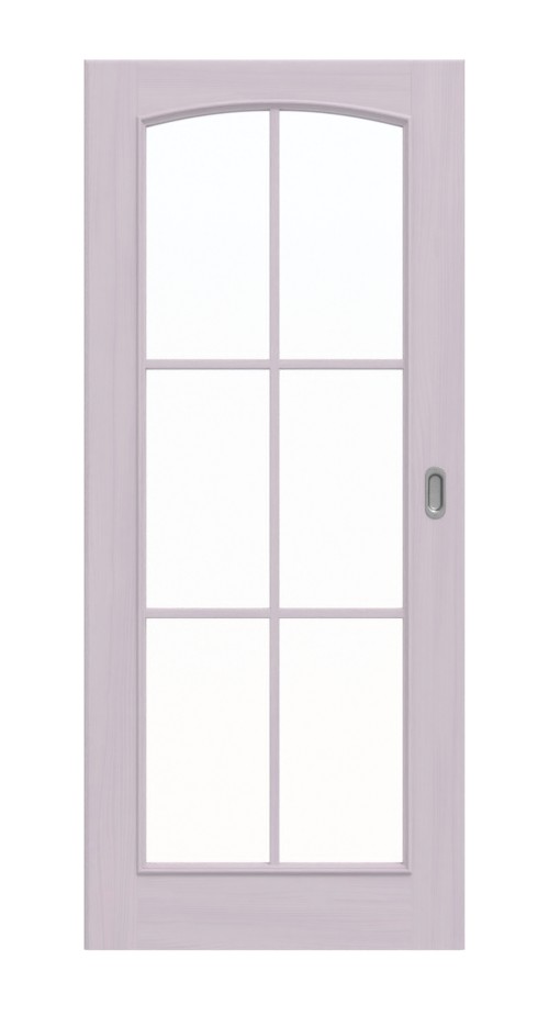 Dzięki dużemu przeszkleniu z stylowym łukiem segmentowym i ramą z przegrodami do pomieszczenia wpada przyjemne światło. Ozdobne listwy szklane i szerokie fryzy dopełniają klasyczny design. Dzięki białej pigmentacji lite drewno świerkowe zyskuje przyjazną aurę. Pod tym widoczne są delikatnie słoje drewna rysowane przez naturę, które czynią każde drzwi unikalnym dziełem.