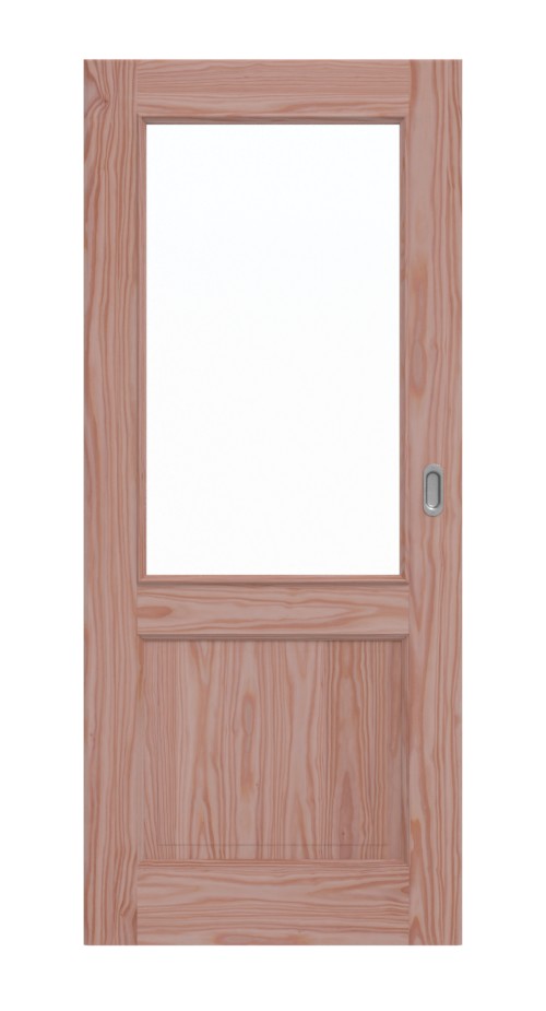 Klasyczny design drzwi uzyskuje dzięki wyodrębnionemu wypełnieniu w dolnej części, otoczonym eleganckimi profilami fryzowymi. Ponadto wydrążenie szklane pozwala na piękne wpuszczenie światła. Przytulną atmosferę zapewnia ciepłe drewno modrzewiowe, które jest przesiąknięte naturalnymi słojami.
