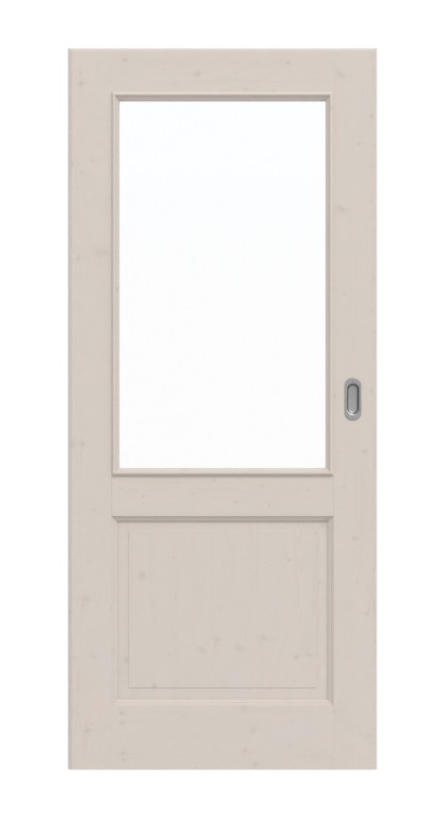 Ładna drzwi z litego drewna w stylu wiejskim: Dzięki drzwicom przesuwnym TE-23 z białego pigmentowanego świerku wprowadzisz kawałek natury do swojego domu.