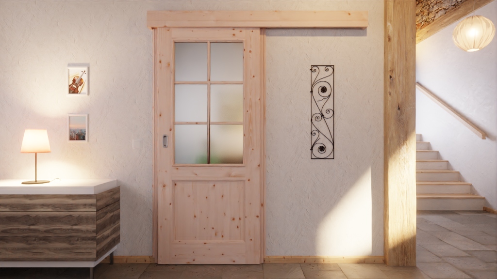 Piękne wewnętrzne drzwi przesuwne z litego drewna o konstrukcji klejonej warstwowo: