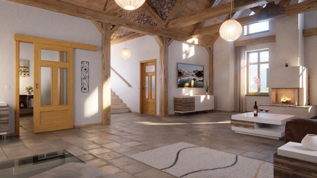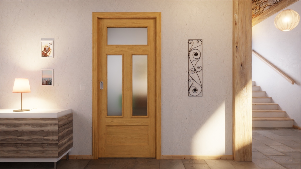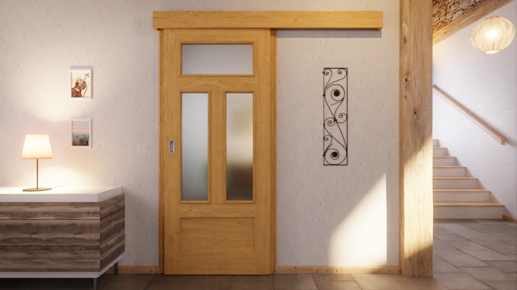Atrakcyjna wewnętrzna drzwi przesuwne z litego drewna o wysokiej stabilności dzięki konstrukcji z klejonego warstwowo:
