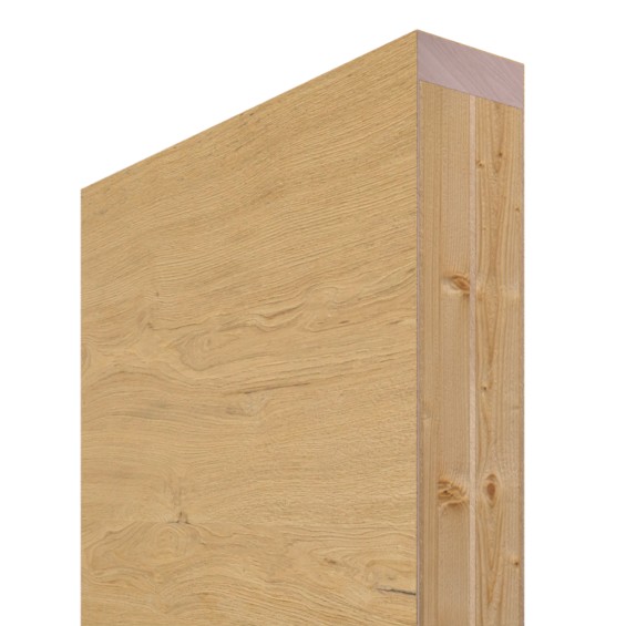 Typowe słoje przechodzą przez ciepłe dębowe drewno w kierunku poziomym, nadając każdemu skrzydłu drzwi indywidualny charakter.