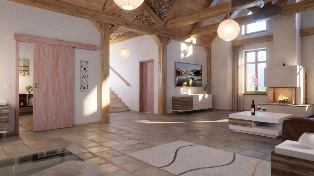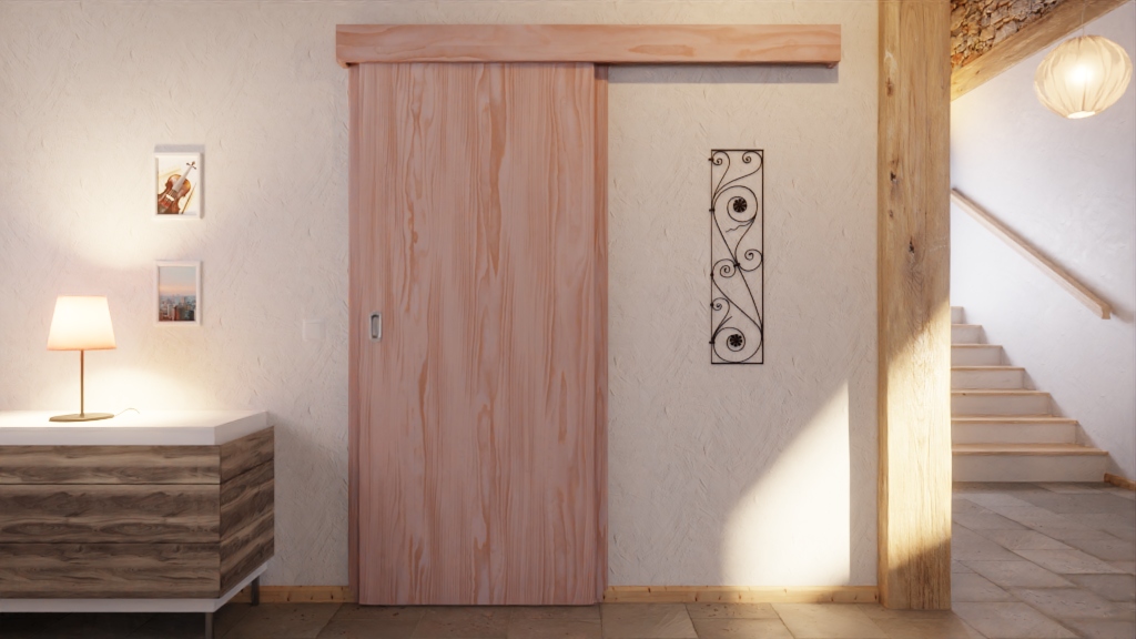 Praktyczne drzwi przesuwne do wnętrz z litego drewna o wysokiej stabilności dzięki konstrukcji z klejonej warstwy: