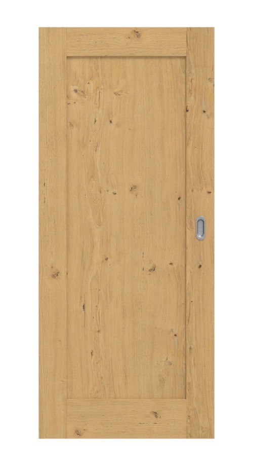 Nowoczesna prostota przejawia się w drzwiach pokojowych z szerokimi fryzami i wypełnieniem z litego drewna, które stanowi większość skrzydła drzwi. Drewno dębowe charakteryzuje się żywą słojowatością z gałęziami, która w unikalny sposób prezentuje się na każdym drzwiach.