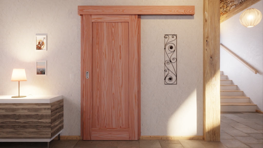 Oszczędzająca miejsce drzwi z litego drewna: Zręcznie łączy drzwi przesuwne z litego drewna TM-1 z modrzewia czystą naturalność z najlepszą jakością wykonania.