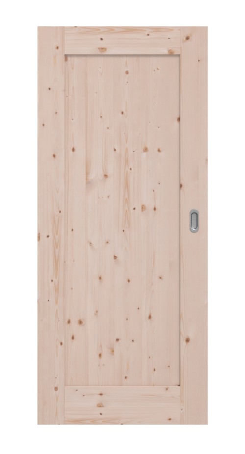 W środkowej części skrzydła drzwi znajduje się duża wypełnienie, które nadaje nowoczesny i prosty wygląd. Z każdej strony otoczone jest szerokimi fryzami. Żywa, sękata struktura zdobi drewno świerkowe, czyniąc każde skrzydło drzwi unikalnym dziełem sztuki.