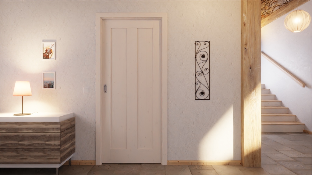 Budowa klejona warstwowo drzwi przesuwnych zapewnia wysoką stabilność. Dodatkowo drzwi umożliwiają optymalne wykorzystanie przestrzeni w małych pomieszczeniach, ponieważ nie otwierają się do środka.