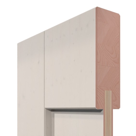 Proste listwy i dwa smukłe, stojące wypełnienia z prawdziwego drewna tworzą tu zgrabny, współczesny wygląd. Pod białym pigmentem subtelnie rysuje się słojowanie świerka z gałęziami.