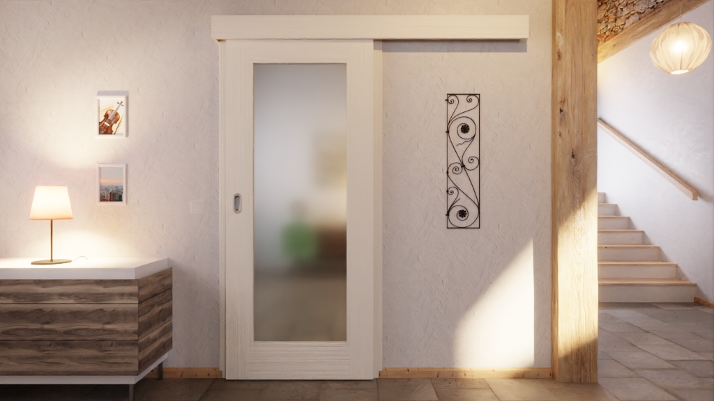 • Zakres dostawy: Skrzydło drzwiowe, muszla drzwi przesuwanych, rowek prowadzący w podłodze