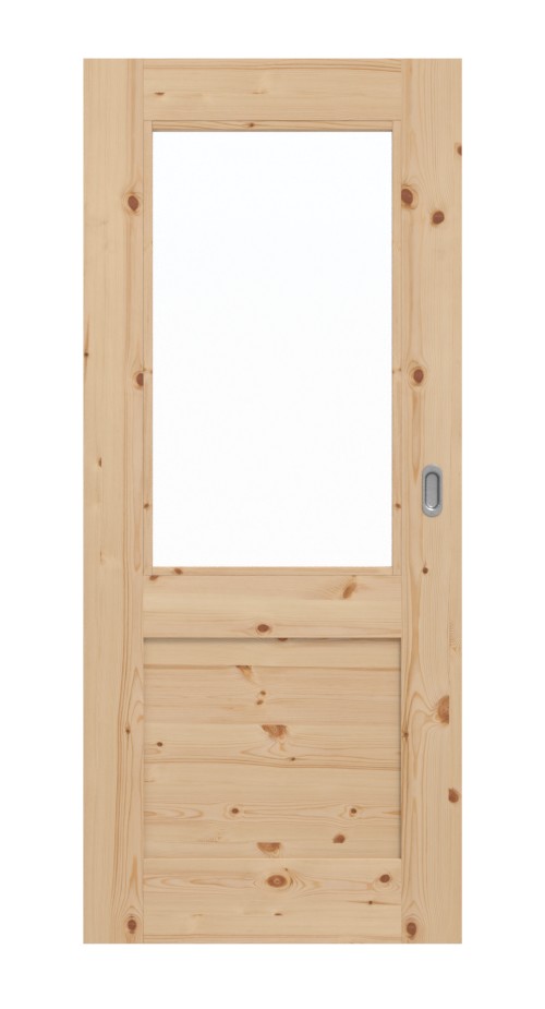 Wykusz, płaska wypełnienie i proste listwy szklane tworzą w tym modelu prosty design. Typowe usłojenie delikatnie rysuje się na drewna sosnowego i nadaje rustykalny akcent dzięki żywym ramkom z sękami.